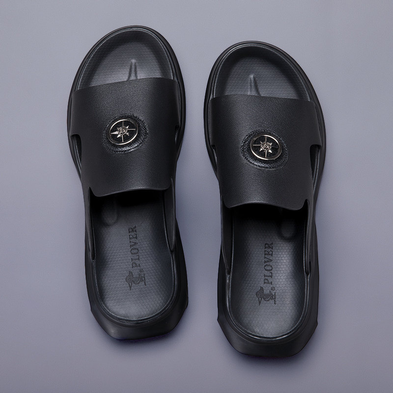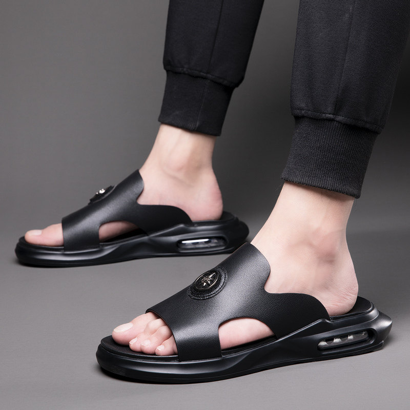 2022 new summer men's sandals first layer cowhide leather word slippers men tide outside wearing trend sandals men