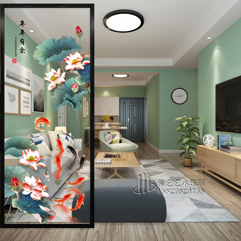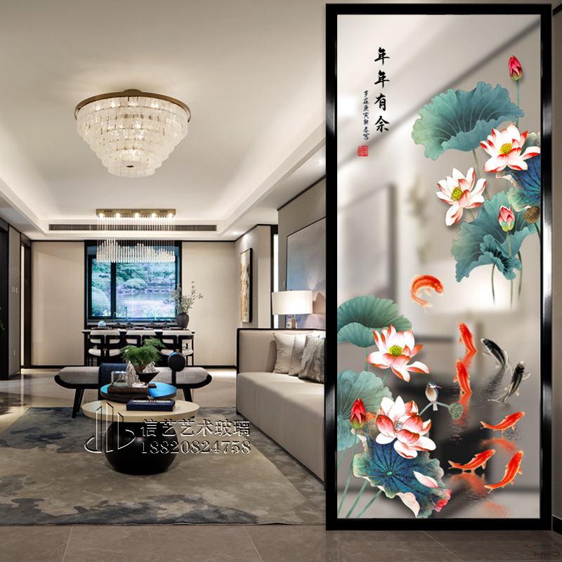 Custom Crafts Art Glass Screens Partition Living Room Genguan New Chinese Entry Frosted Light Transmission Minima Lotus photo-Taobao