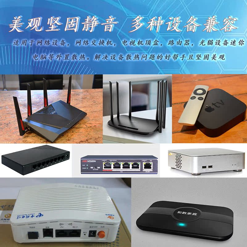 Wireless router set-top box mini host light cat switch 12cm mute USB fan cooling bracket