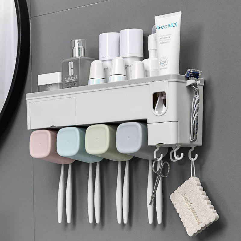 Toothbrush Shelf Toiletries Cup Tooth Cup Cosmetic Room Wall-mounted Free to punch a four-mouth light and luxurious automatic toothbrush holder