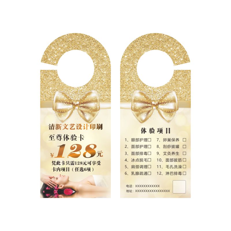 Custom door hanging card beauty salon opening mobile door handle advertising extension customer experience card free design business card