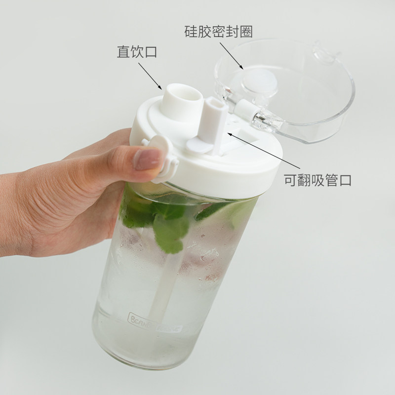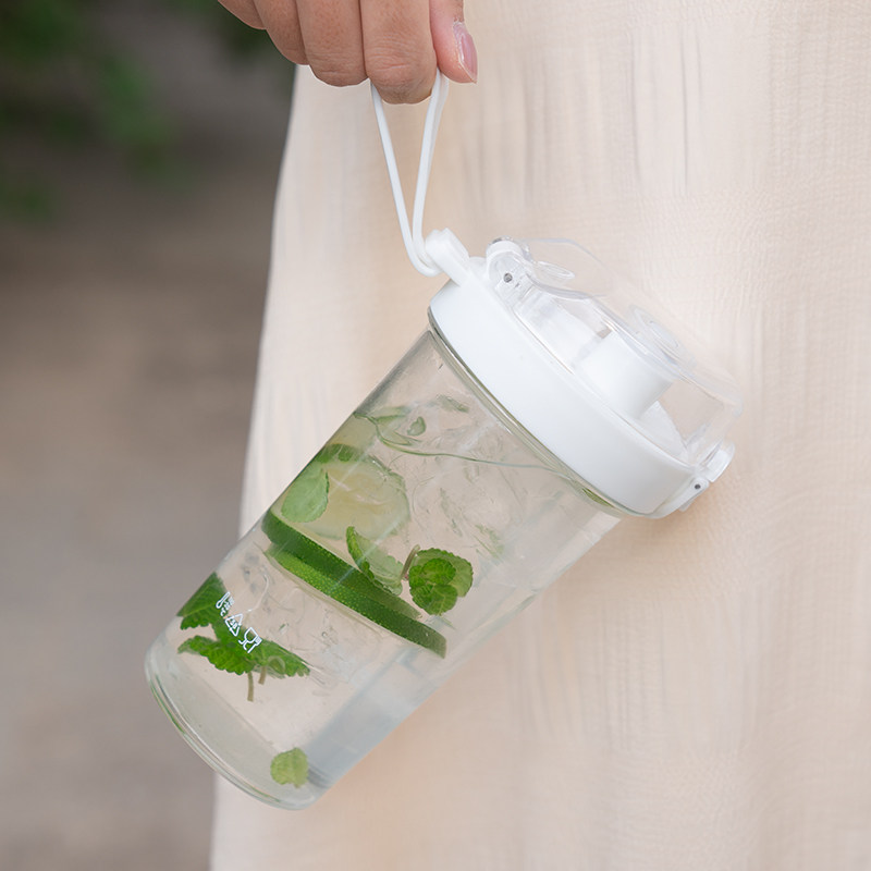 Stay White Summer Portable Double Drinking Straw Cup Female Water Cup Brief Fresher With Hand Dual-use Creative Cup Transparent Plastic Cup