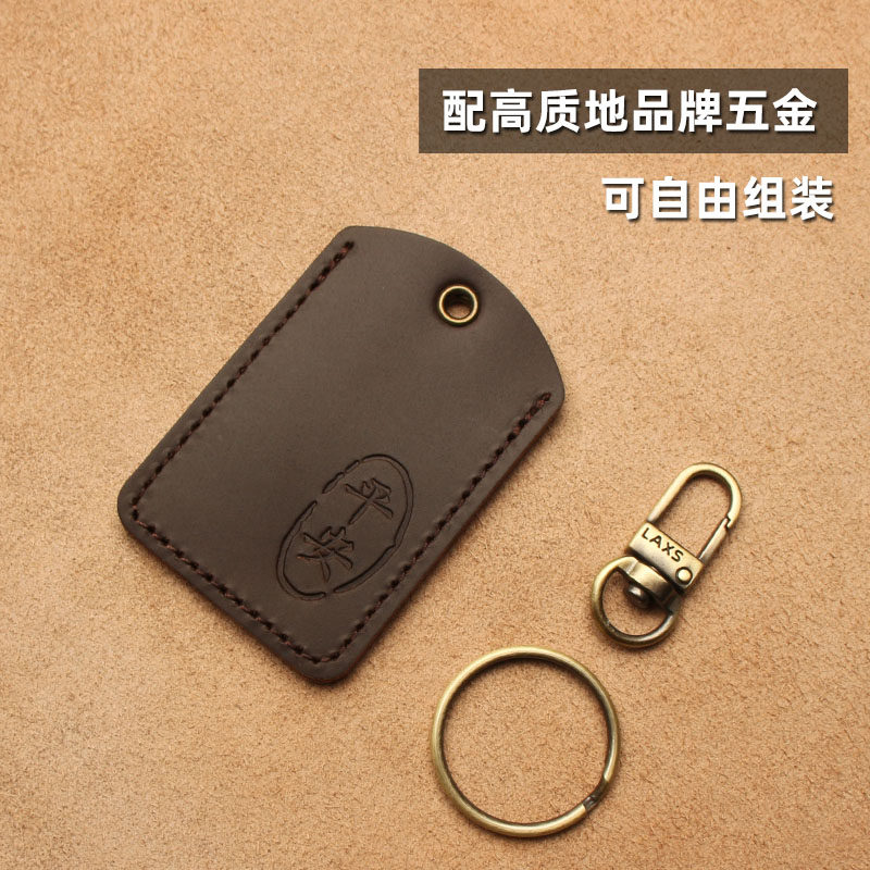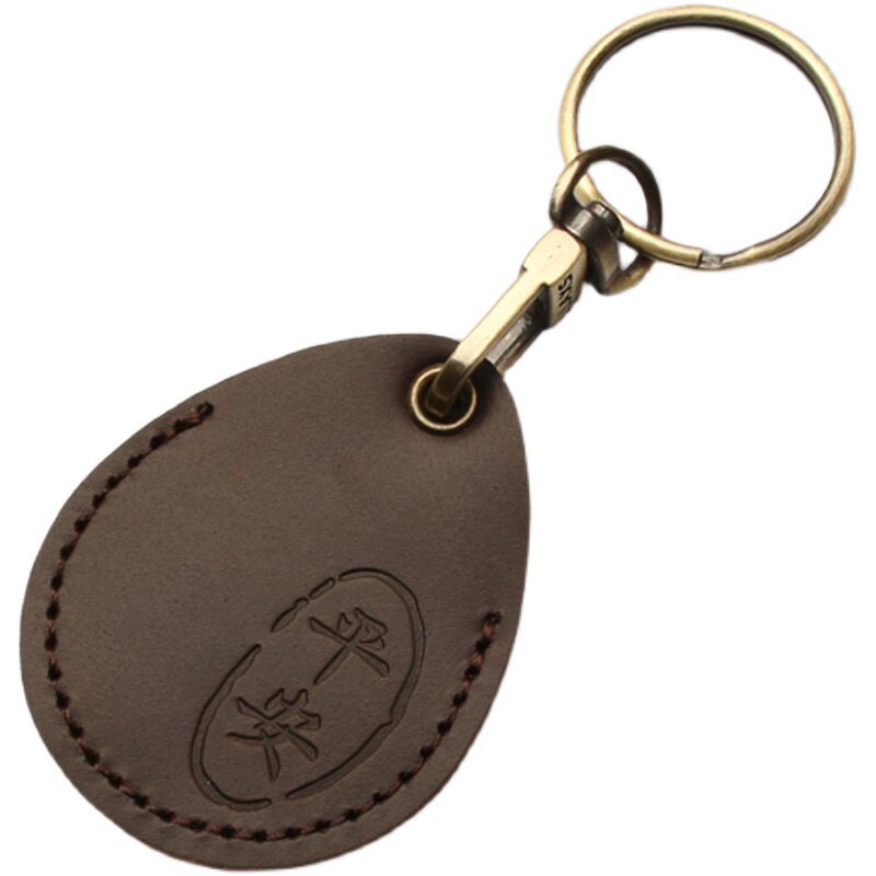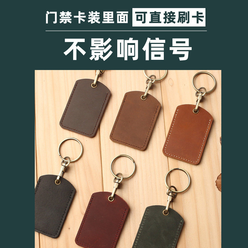 Induction access control card set leather men's small rectangular water drop key set buckle safe community elevator card protection cover