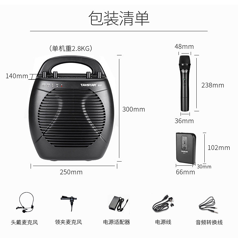 Takstar wins E17 Desheng little bee teacher special amplifier conference training speaker wireless amplifier microphone high-power headset lavalier handheld microphone shouting machine