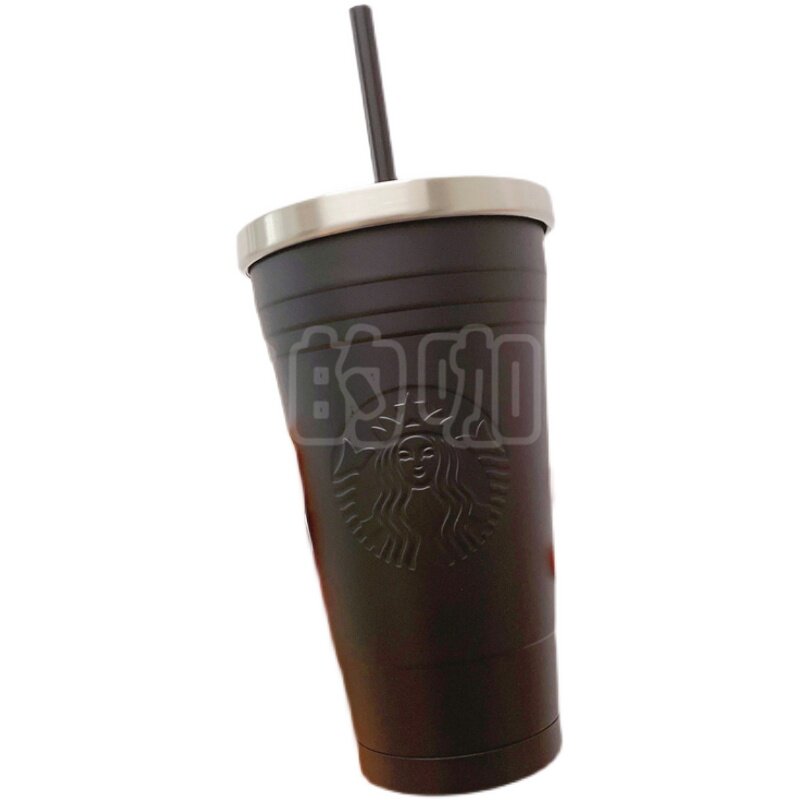 Starbucks Cool Black Classic Double Stainless Steel Straw Cup 473ml Brief for men drinking water cups