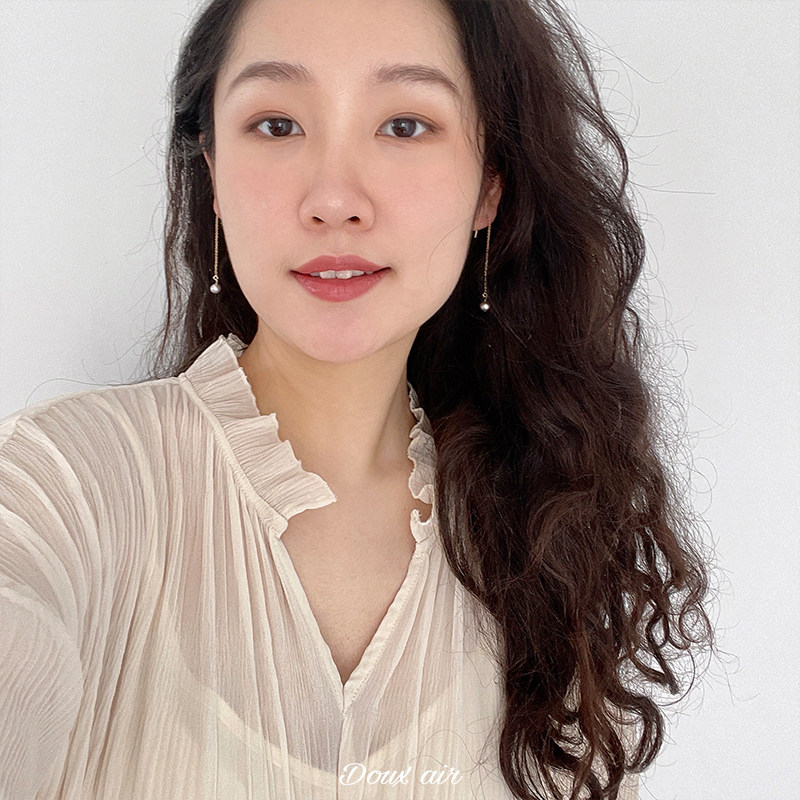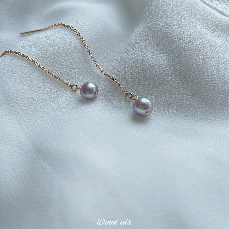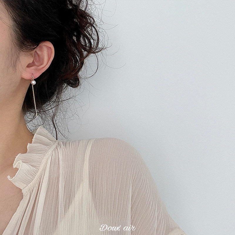 Absolute Sweet Air Silver Grey Pearl Near Round Glare ear necklace 14k Baugold Temperament 100 Hitch-length Ears Pendant THIN COMMUTE