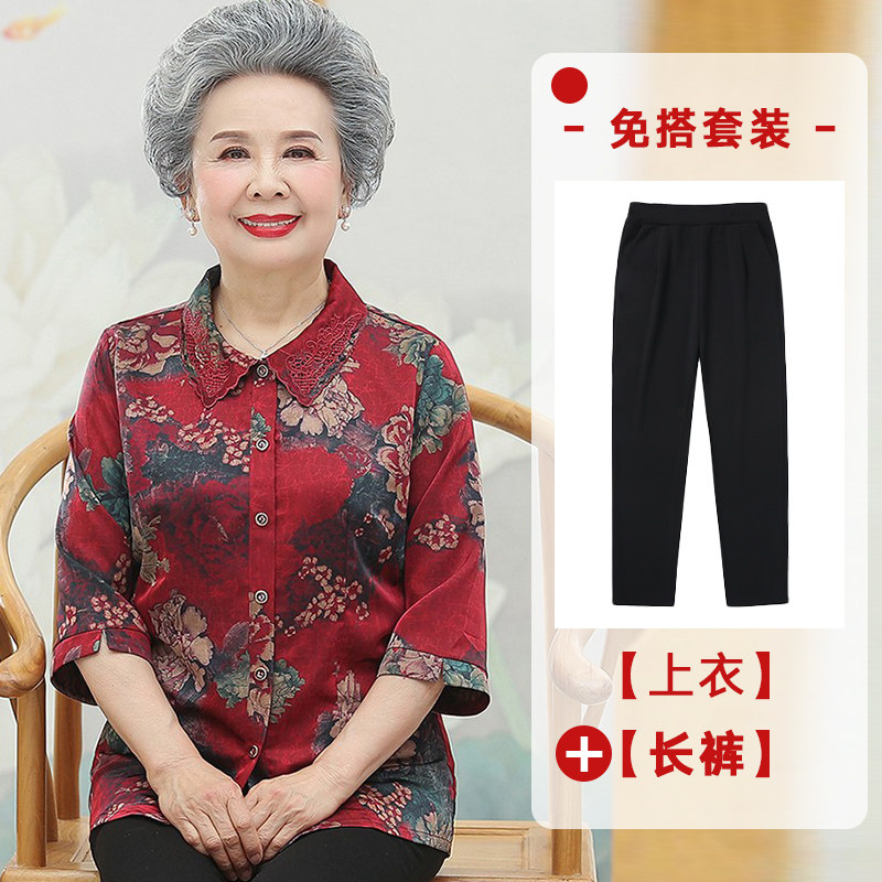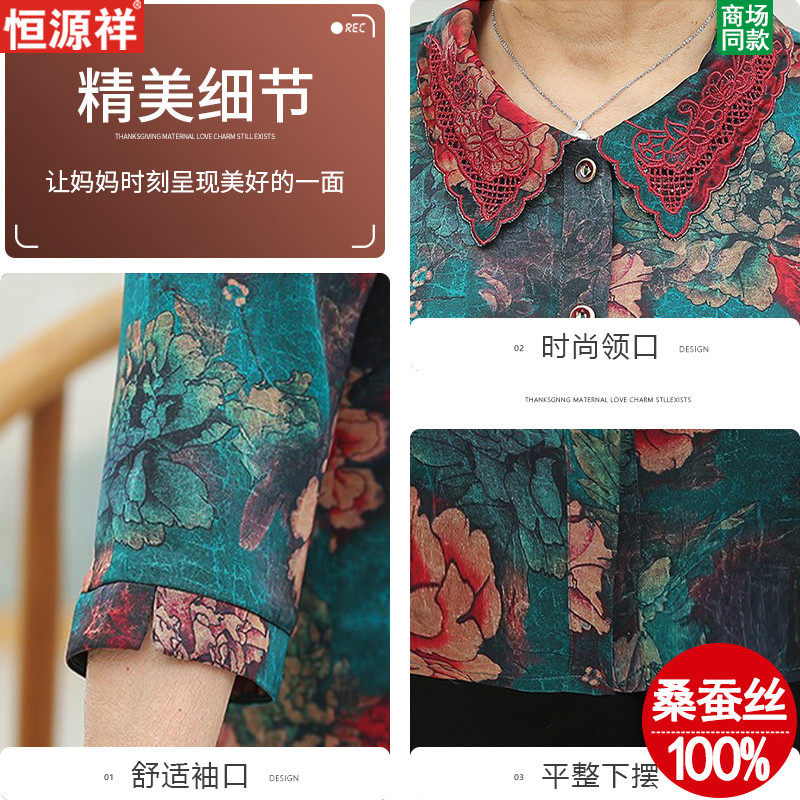 Hengyuan Xiang Middle Aged Woman Dress Grandmother Summer Clothing Real Silk Shirt Mom Loaded With Big Size Shirt Old Lady Old Lady Blouse
