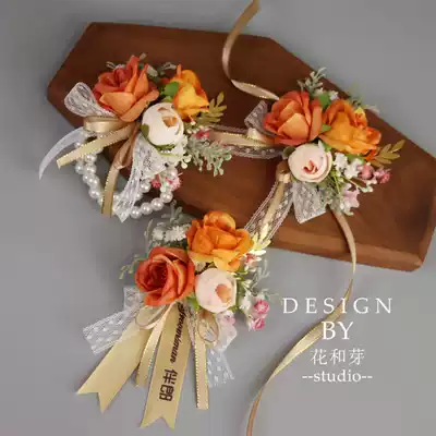 2021 original orange orange flowers Mori leaves groom wedding bridesmaid opening business corsage hand flower