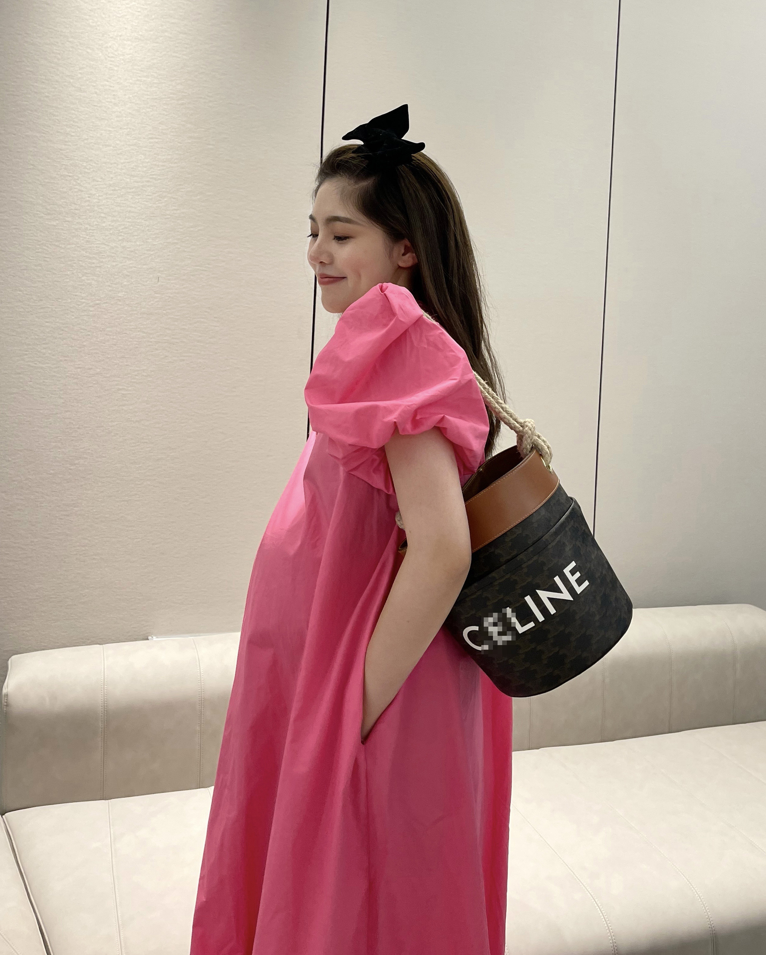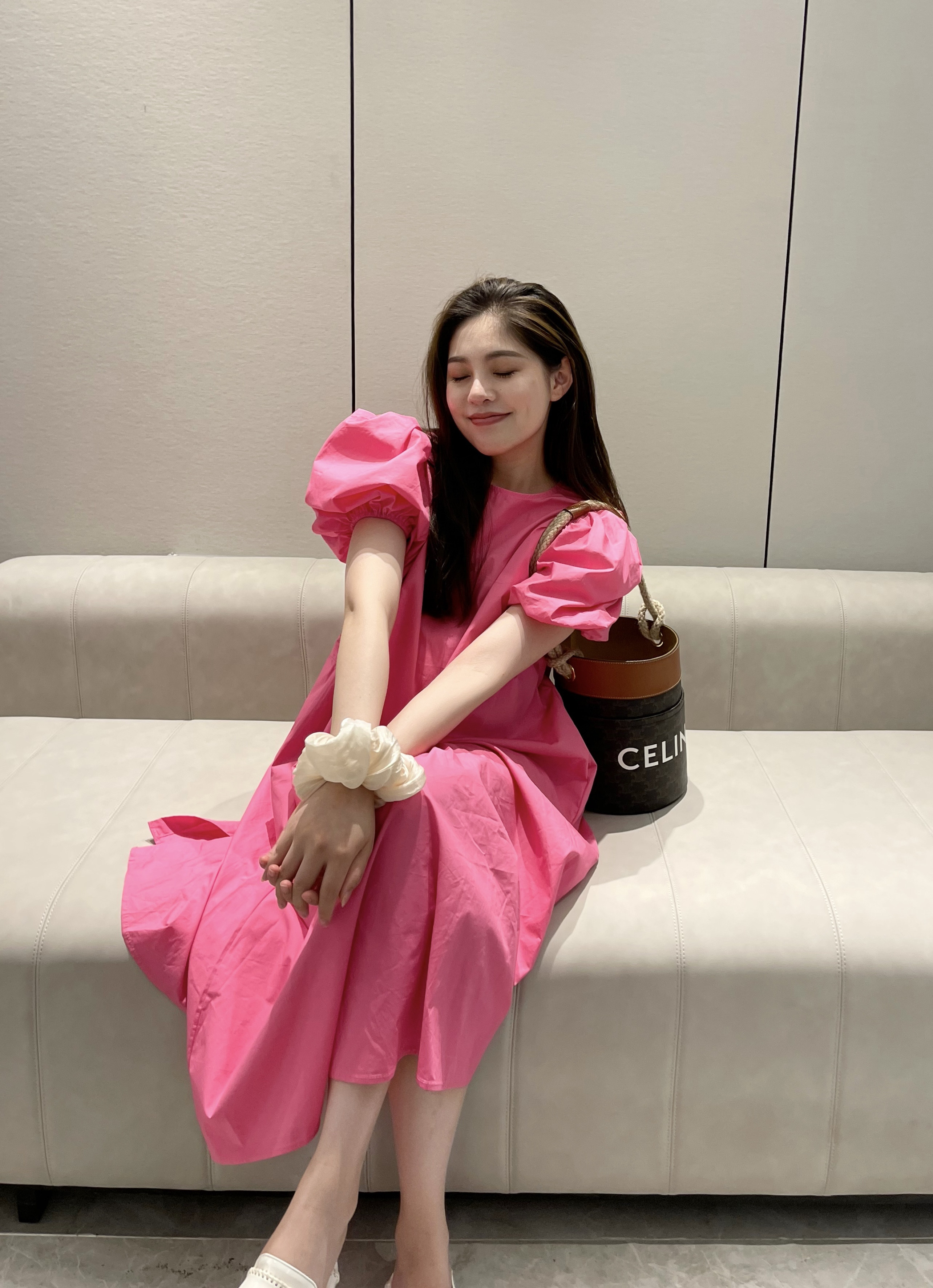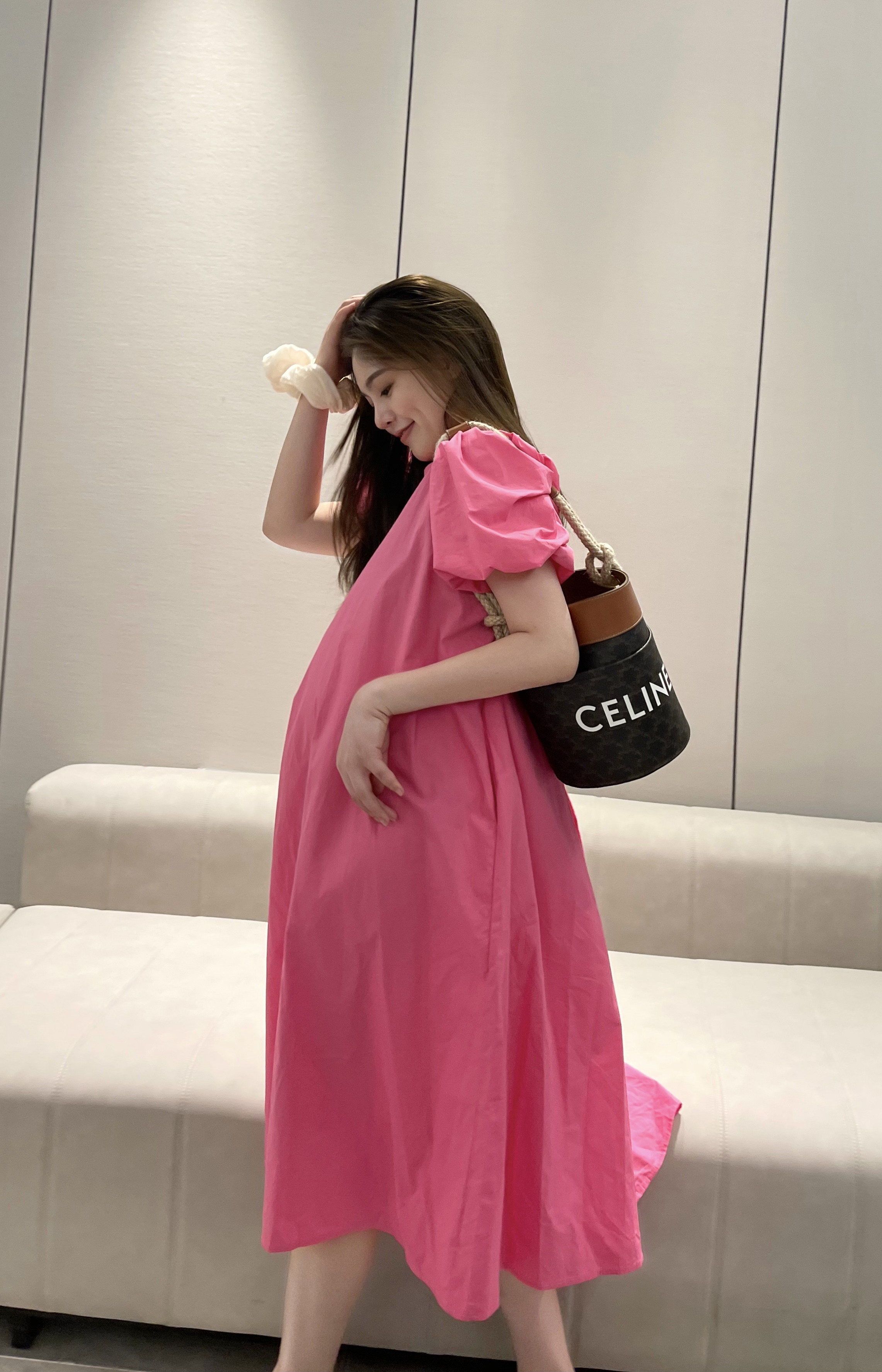 PEIPEI maternity Korean pregnancy national style bubble sleeve mid-length dress loose summer large size skirt
