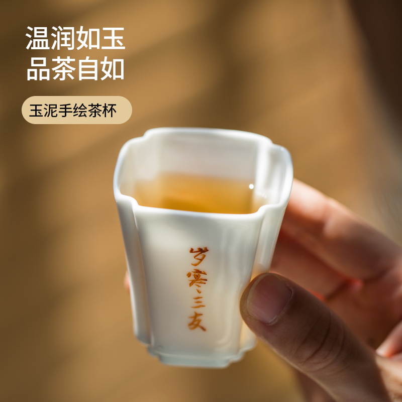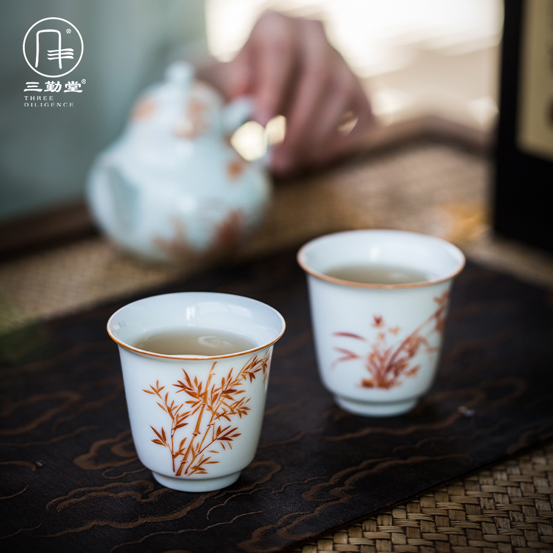 Sanqitang tea set Jingdezhen hand-painted glaze white porcelain tea cup kung fu tea set men and women Master Cup Single Cup