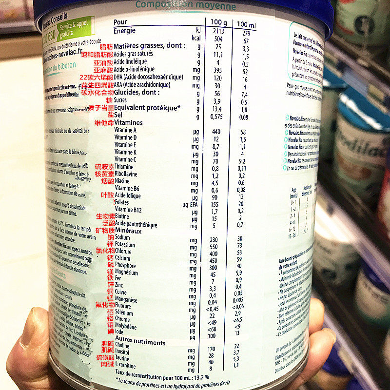 French Novalac RIZ Baoyile hypoallergenic rice hydrolyzed protein milk powder 0-3 years old 800g