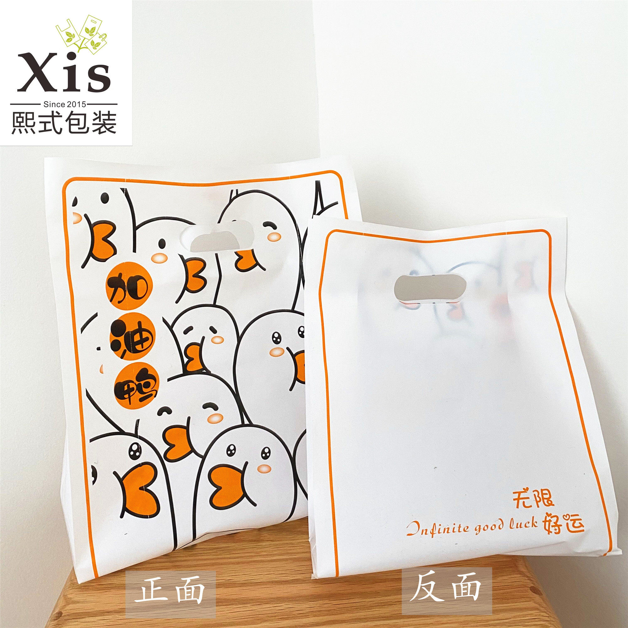 Refueling Duck Cream White Bottom Plastic Flat Mouth Handbag Baking Sweet Pucksack Bag Children Ornament Toy Shopping Bag