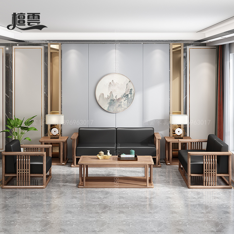 New Chinese style solid wood sofa Zen simple modern large and small apartment living room light luxury office sofa combination customization