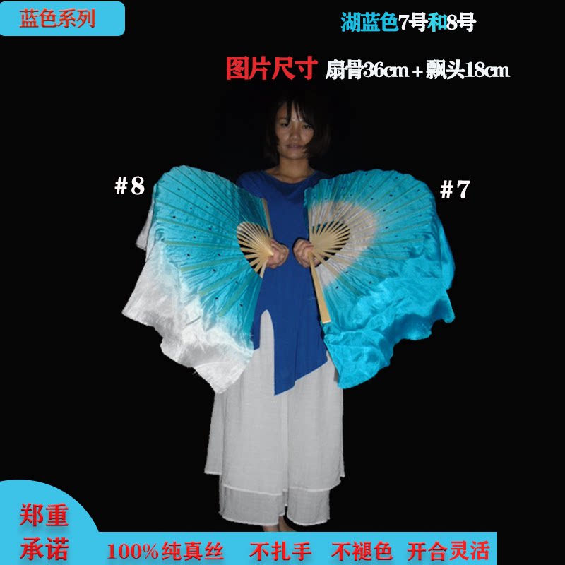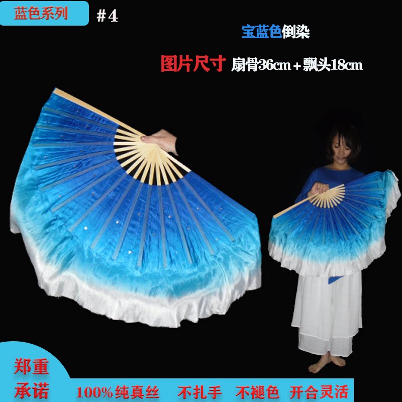 Dance special fan Genuine Silk Treasure Blue Dancing Fan square dance fan Long floating head to build Party Festival Stage props