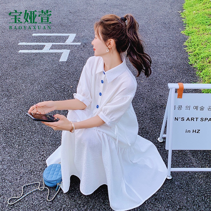 Summer pregnant women dress fashionable knee high-quality pregnant woman dress large size white short-sleeved shirt