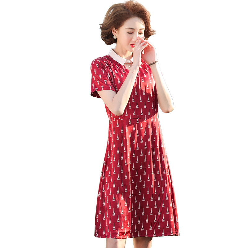 Snowspun Ocean Dress Women's Summer 2021 New Middle Aged Mom Short Sleeve Temperament Long Version Gentle Wind A Character Dress
