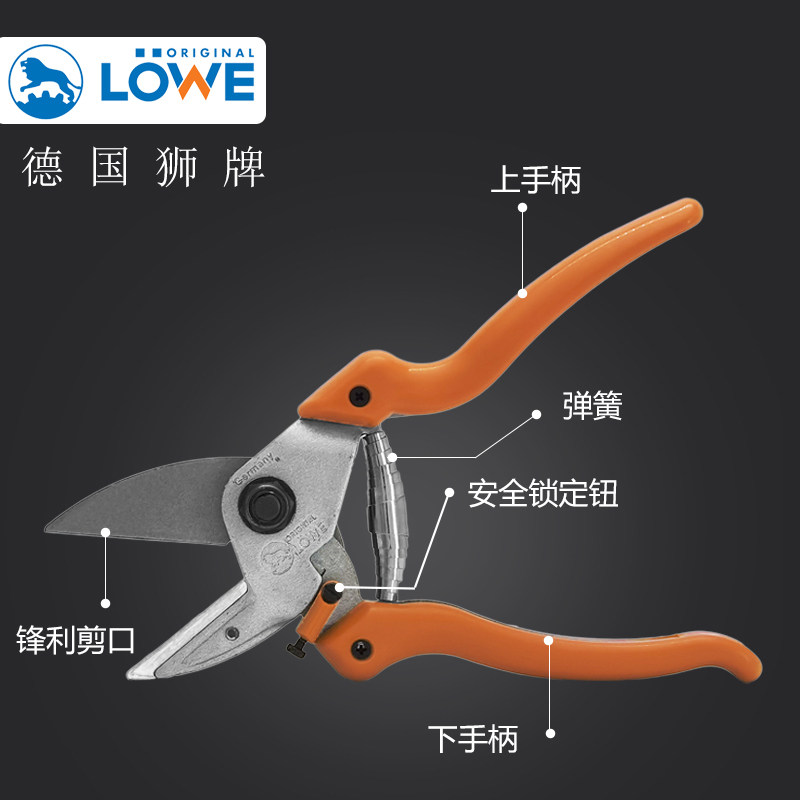 Germany imported lion brand LOWE pruning shears 6104 7 9 anvil shears fruit tree shears hard branch shears thick branch shears fruit branch shears