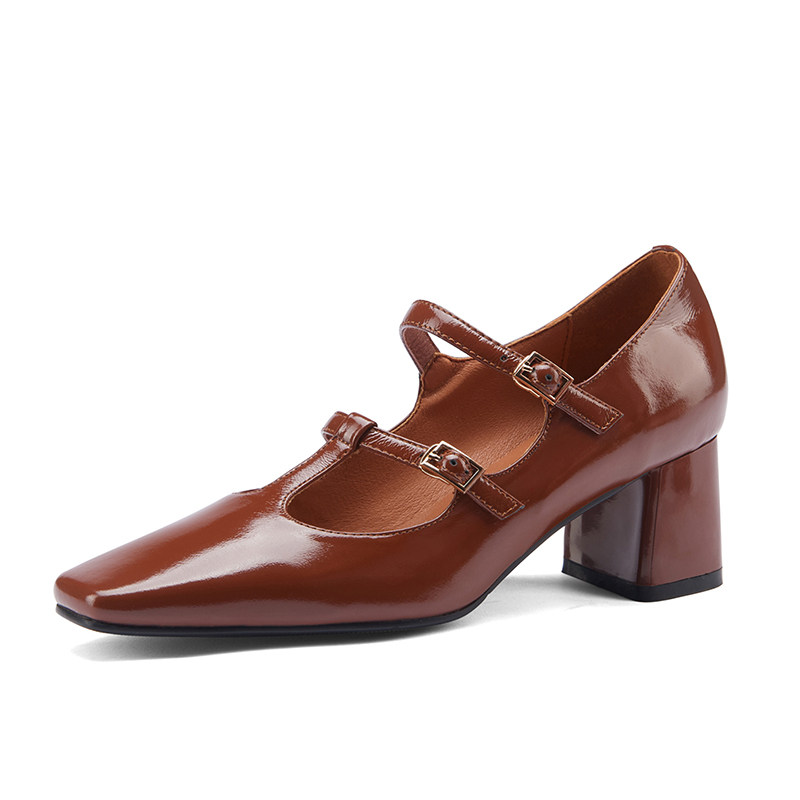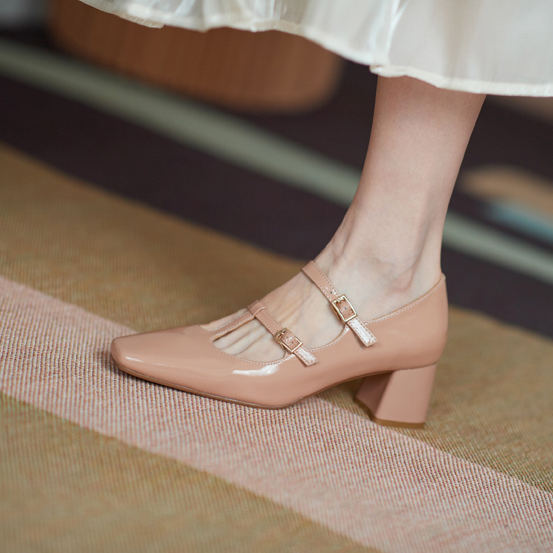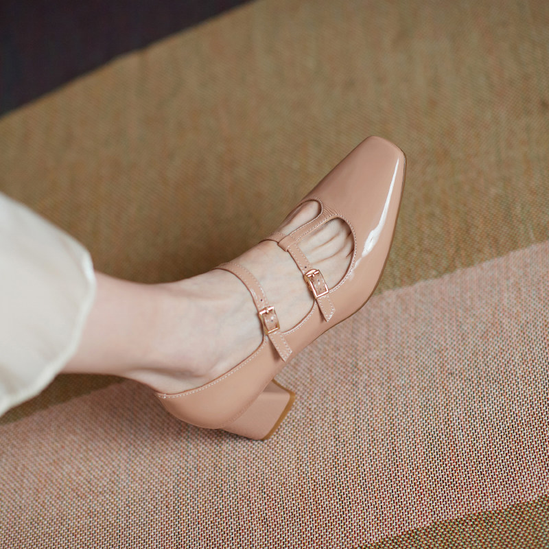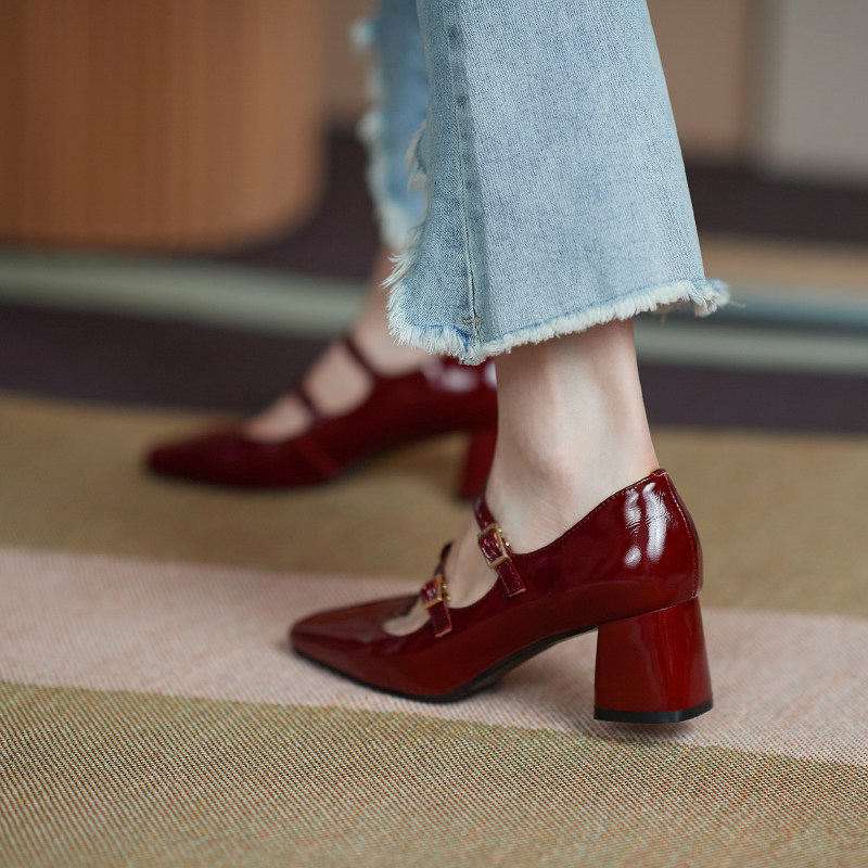 Givenivan texture to pick up ~ lacquered leather single shoe female square head light mouth tingling with high heel shoe heel 5 5cm