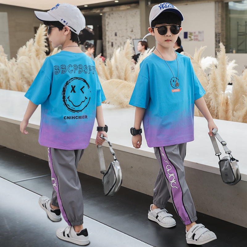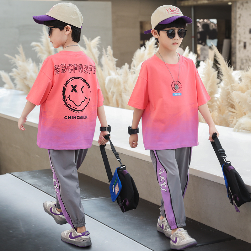 Boy Summer Clothing Suit Children Foreign Pie Summer Boy Great Boy Handsome Gas Net Red Trendy Sports Children Clothing Two Sets