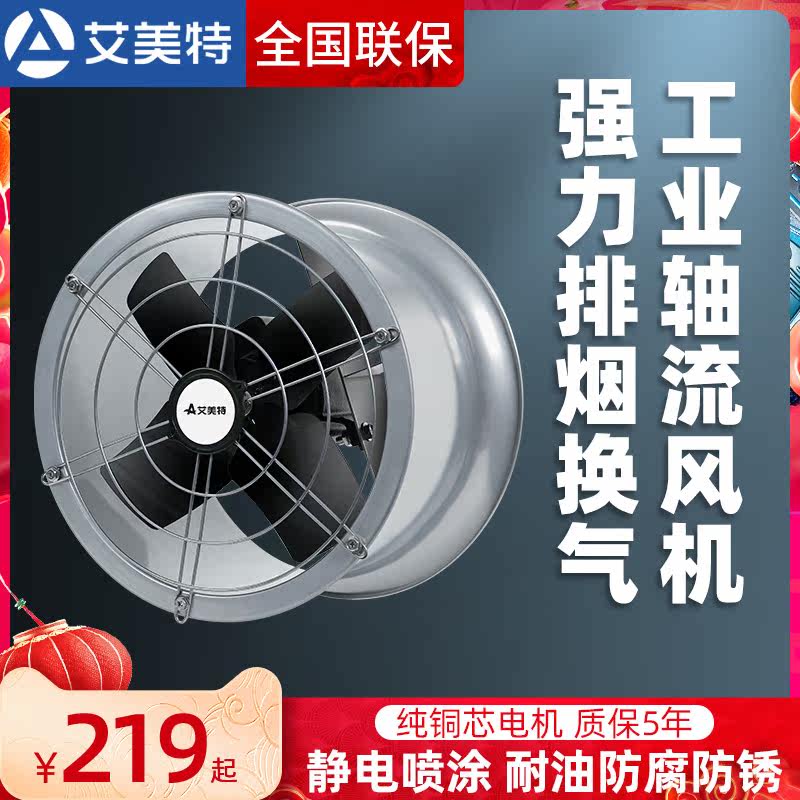 Aimette axial flow blower 220v industrial exhaust fan high speed powerful smoke exhaust commercial kitchen oil smoke exhaust ventilation