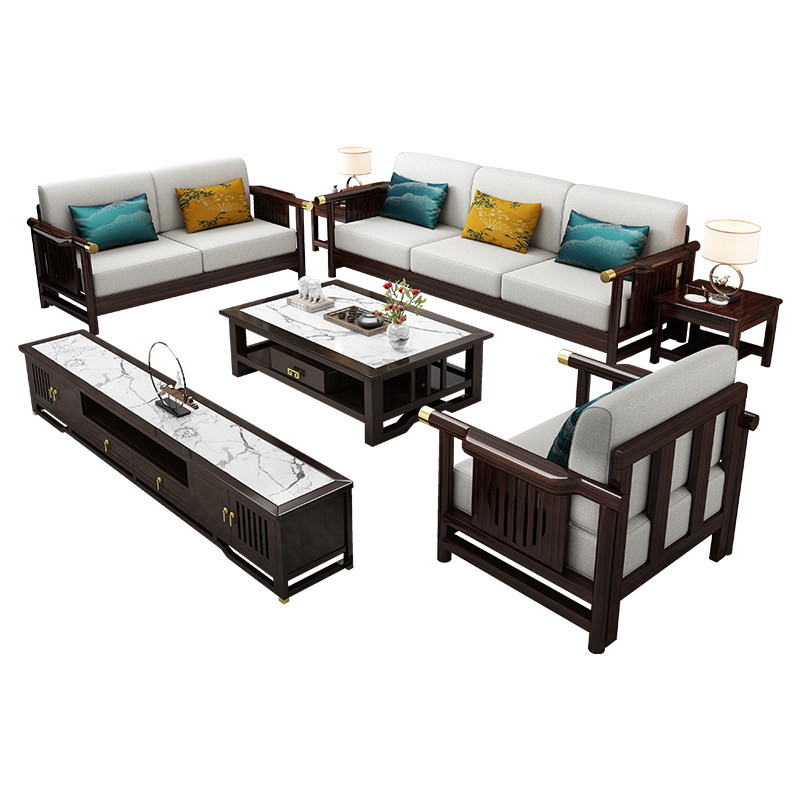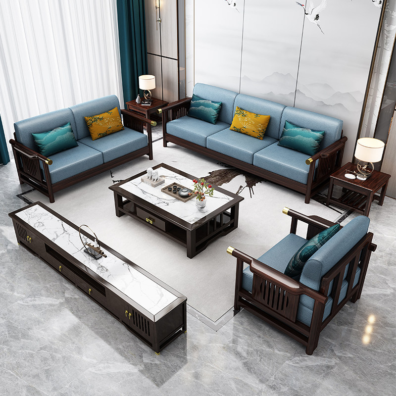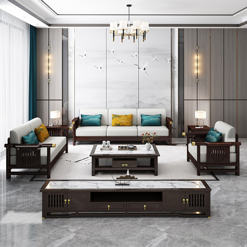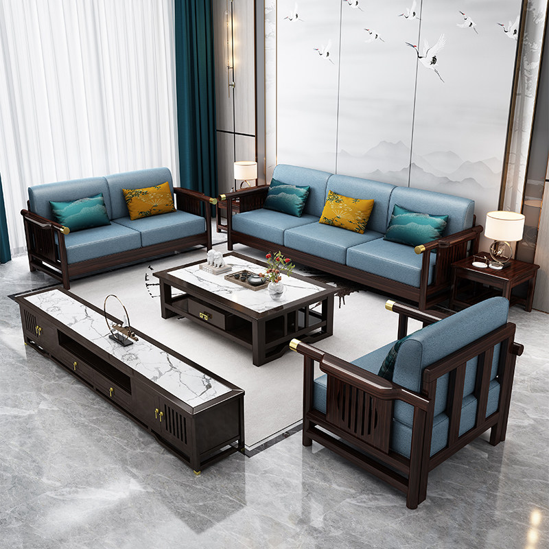 Modern living room new Chinese style all solid wood sofa combination Dapingshu Zen Chinese style wooden technology cloth sofa