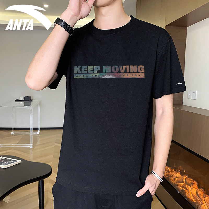 Anta short-sleeved t-shirt men's official summer new loose breathable round neck casual printed cotton men's sports top
