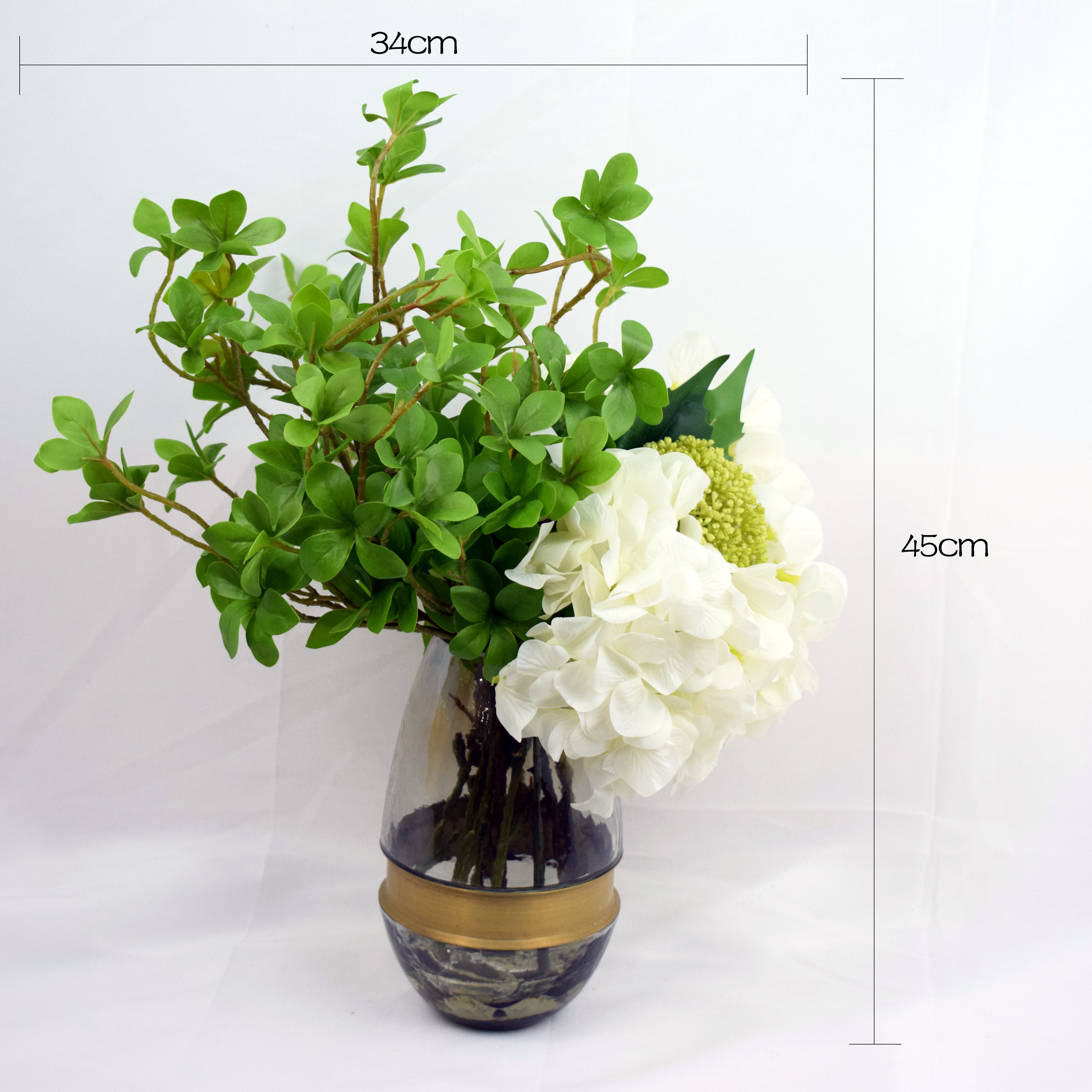 Modern dining table hanging clock white hydrangea simulation flower art modern minimalist simulation flower light luxury fashion living room fake flower