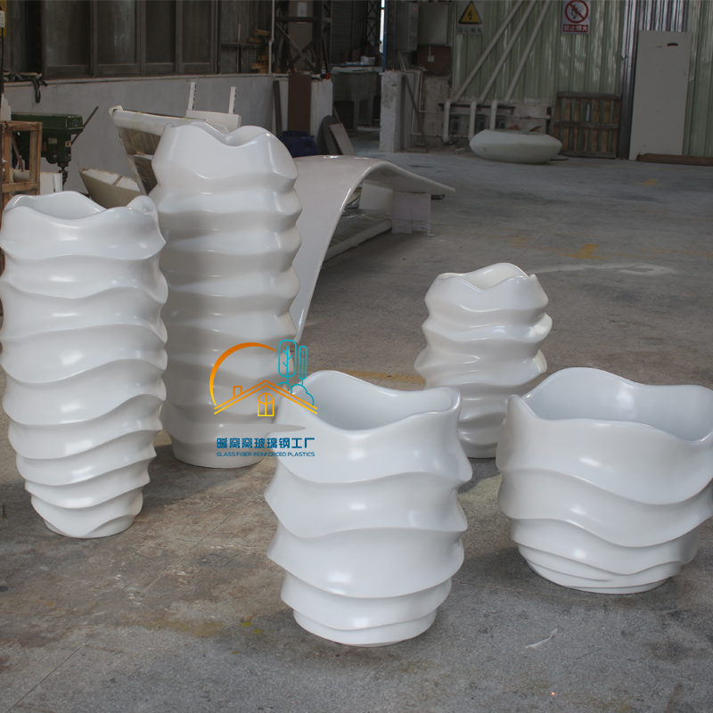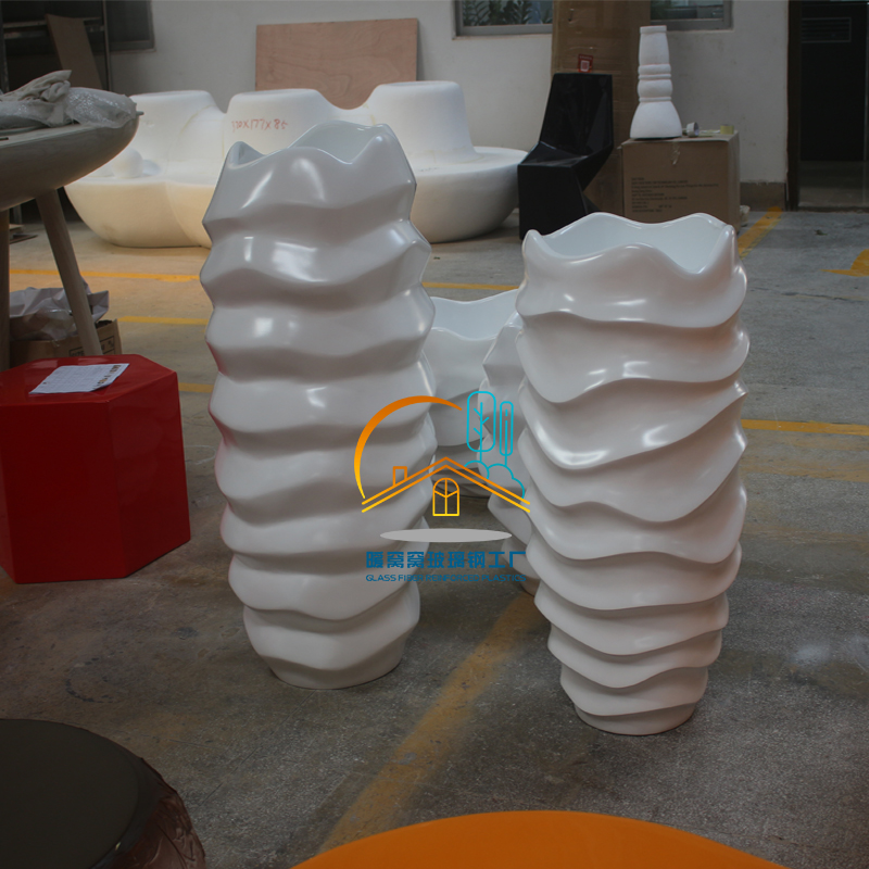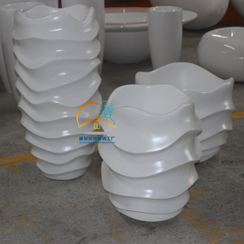 Customized fiberglass flower pot flower bowl thread rotating wave edge creative combination landscape shopping mall outdoor simple decoration