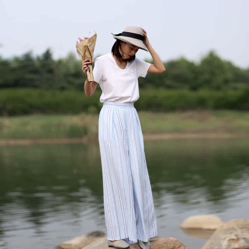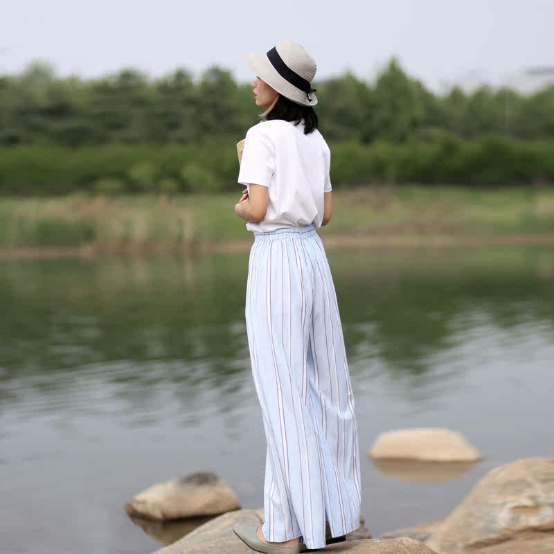 Women's summer trousers thin loose straight striped wide-leg trousers