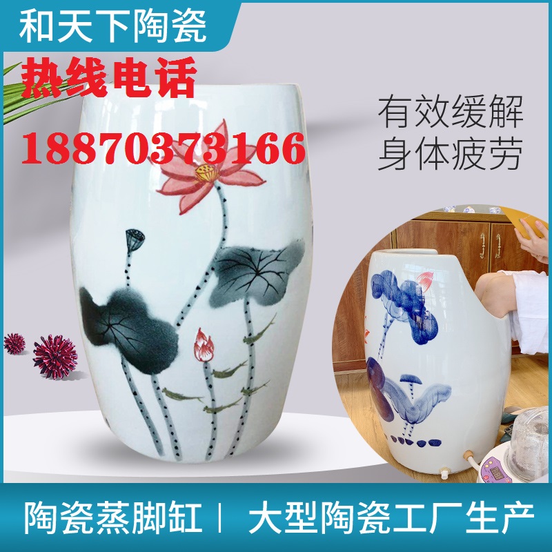 Ceramic foot steaming bucket traditional Chinese medicine steaming foot cylinder ceramic foot Weng living porcelain energy foot therapy cylinder negative ion sweat steaming bucket health care cylinder