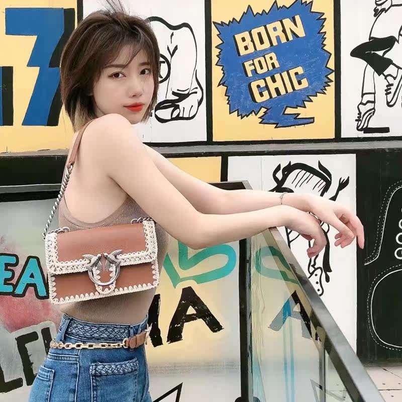 PINKO Pinkie High Swallow Bag 21 Spring Summer New Products Lychee Textured Bull Leather Weave Mini Flying Bird Leather Shoulder Protection Woman Bag
