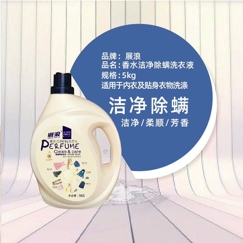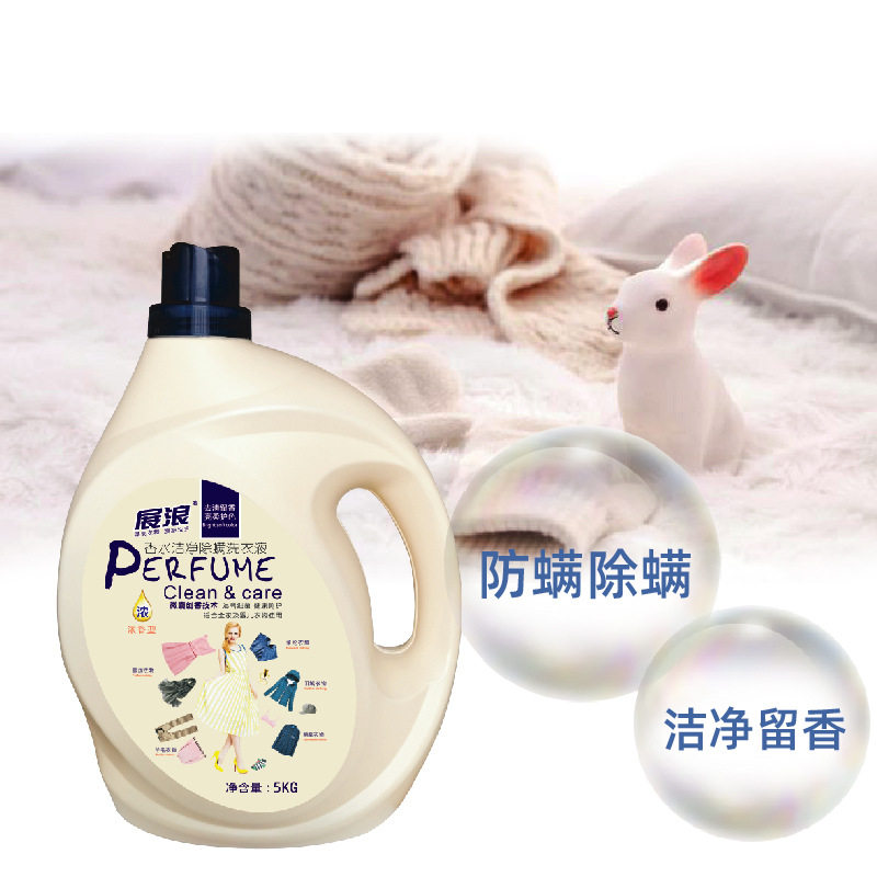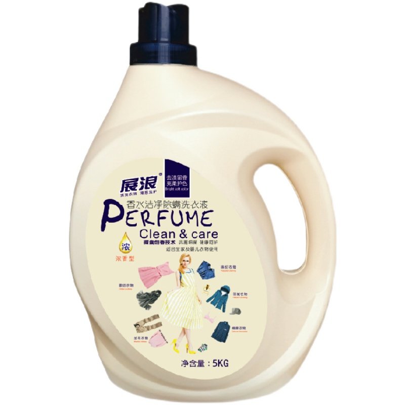 FCL four bottles of gross weight 22KG Zhanlang 5L bottled scented clean de-mite antibacterial silk clothing fragrance laundry detergent