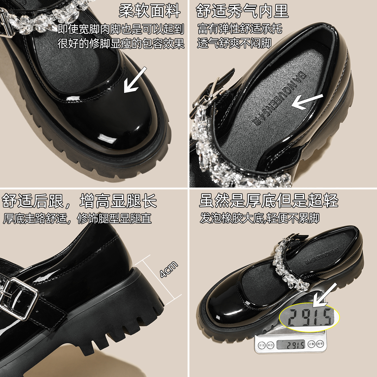 Semi Curry Water Drill Mari Rare Shoes Thick Bottom Spring Single Shoes Women 2022 Day Department Coarse Heel Jk Small Leather Shoes Women Shoes