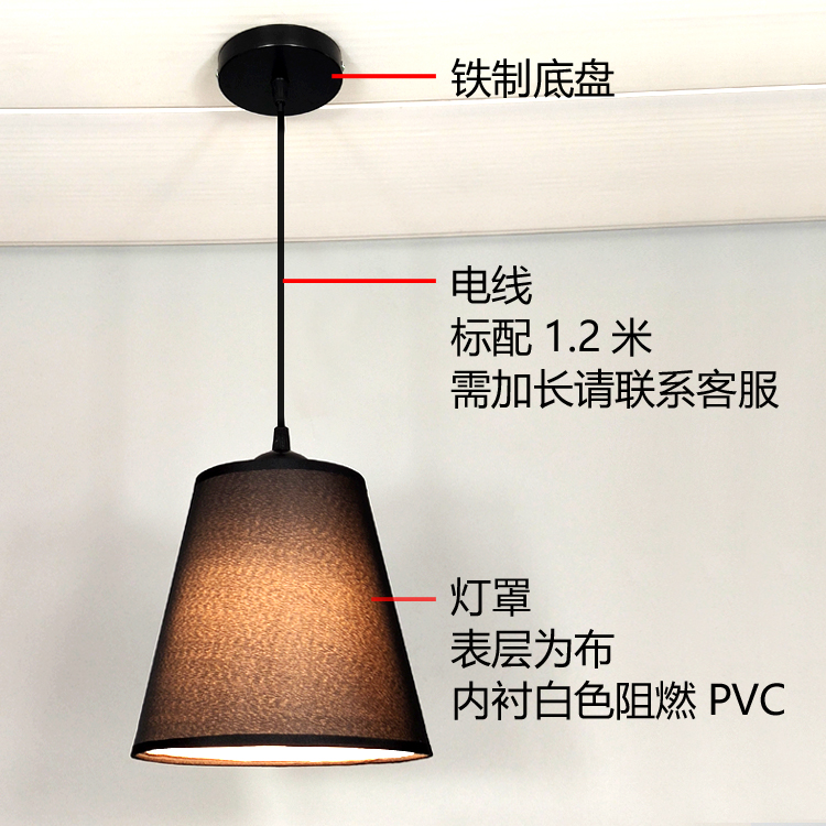 Black Pendant Light Cloth Art Coffee Color Rice Yellow Dark Shade Single Head Three-headed Dining Room E27 Home Engineering Renovation