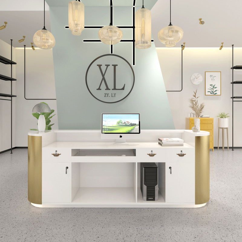 Brief Modern Clothing Store Rationalshop Bar Counter Collection Silver Counter Shop Counter Desk Beauty Parlor Light Lavish Reception Desk