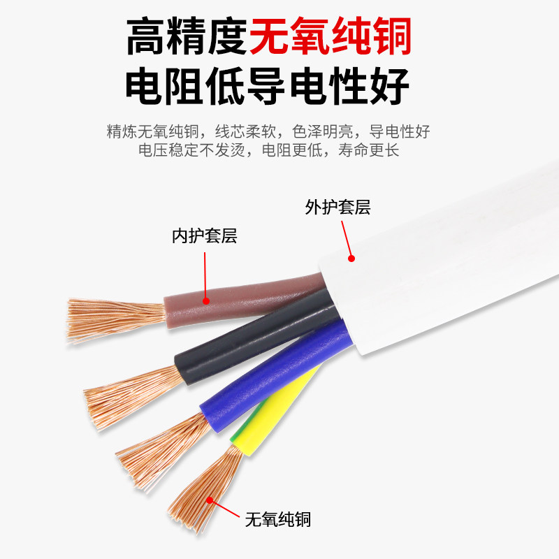 Pure copper core wire RVV control line white Yuba line 4 5 6 7 core 0 5 0 75 1 5 square sheath line