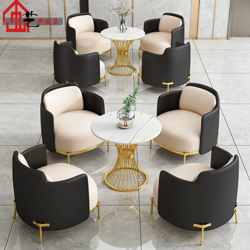 Simple light luxury modern sales office hotel reception small round table negotiation one table and four chairs reception negotiation table and chair combination
