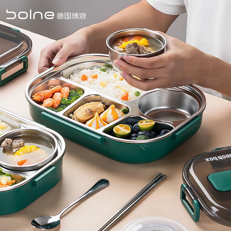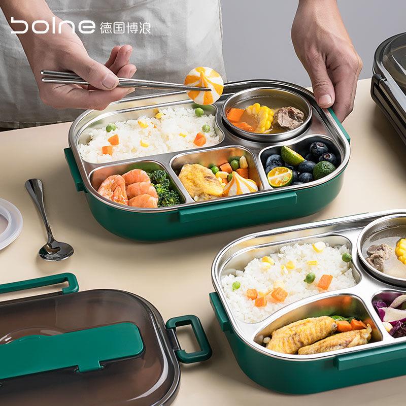 Germany Bolang stainless steel 304 liner lunch box Office worker with lid Student large capacity lunch box tote bag multi-layer