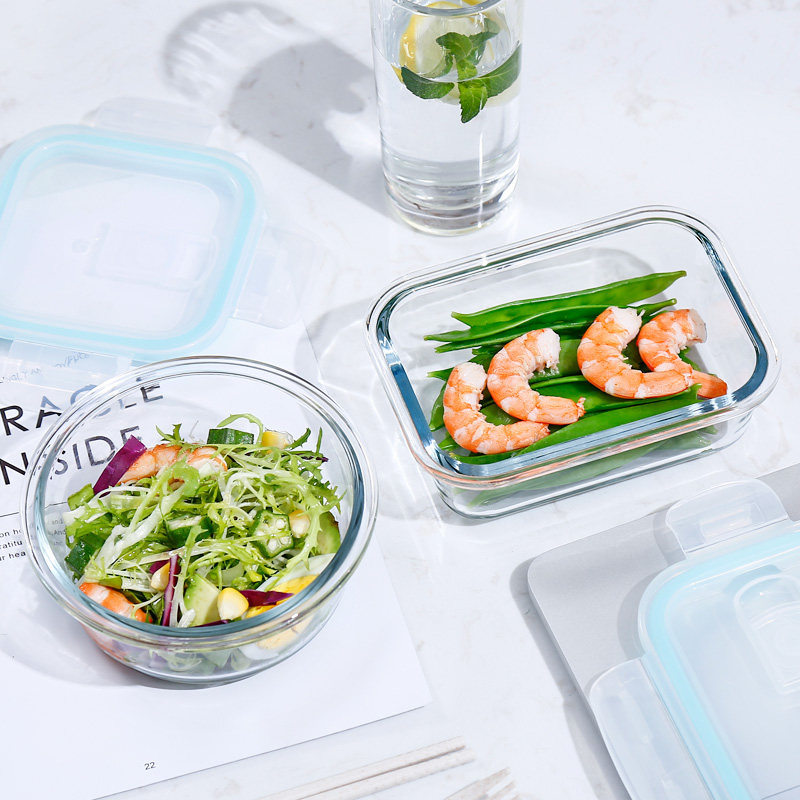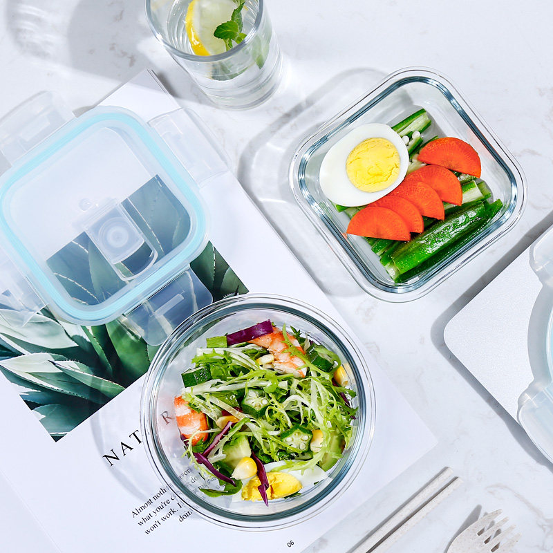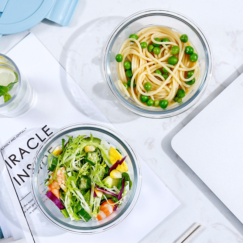 Glass lunch box microwave heating special lunch box fat reduction quantitative office workers with rice lunch box set