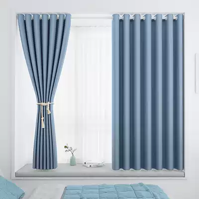 Small curtains non-perforated installation shading simple rental room window sunshade telescopic pole complete bedroom living room finished