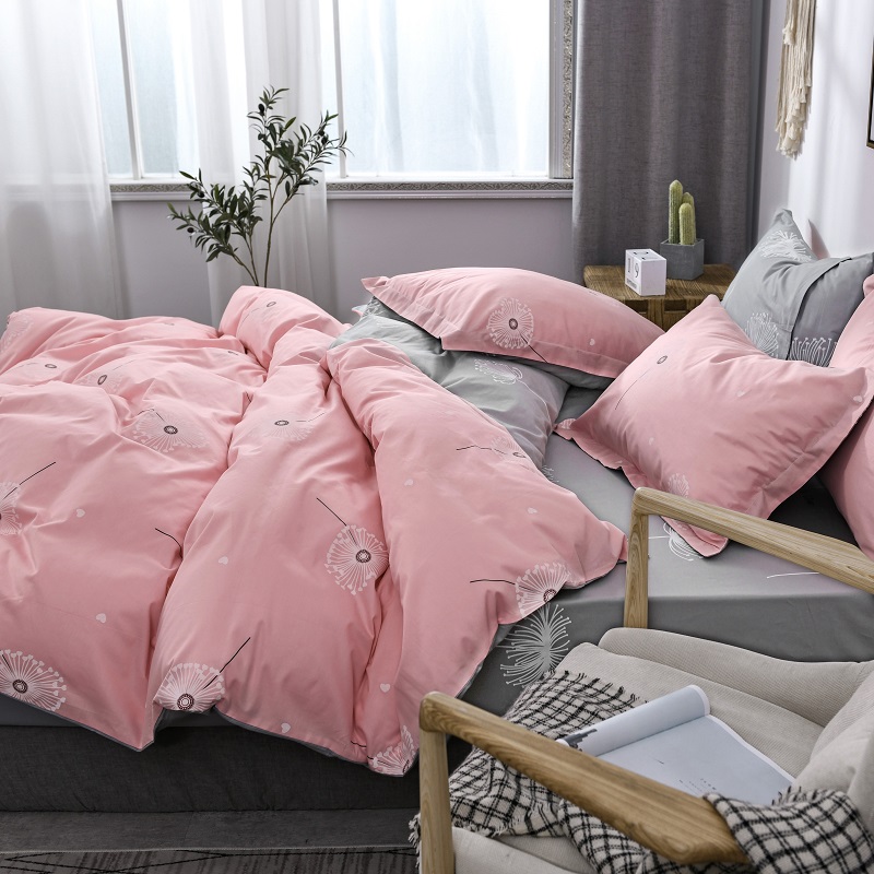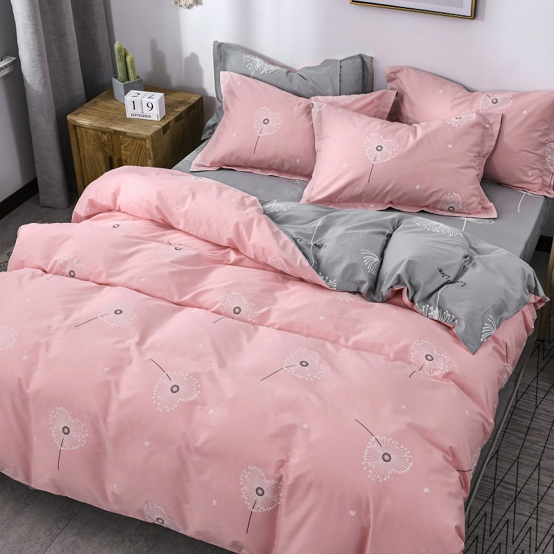 Four pieces of all-cotton pure cotton 100 bed Hat Bed bed linen quilt with single pink Teenage Girl Hearts Princess Wind Net Red-Taobao