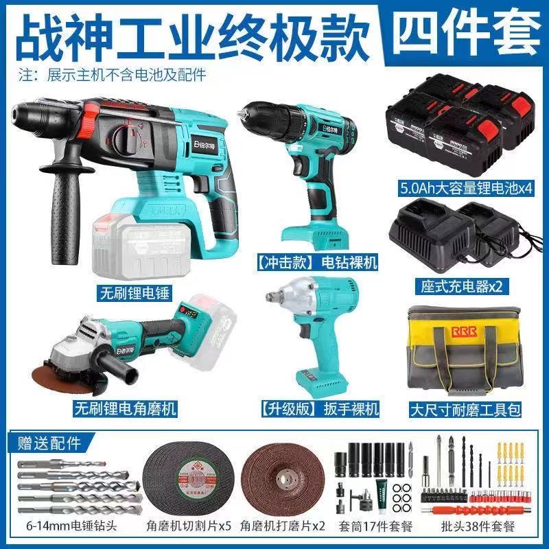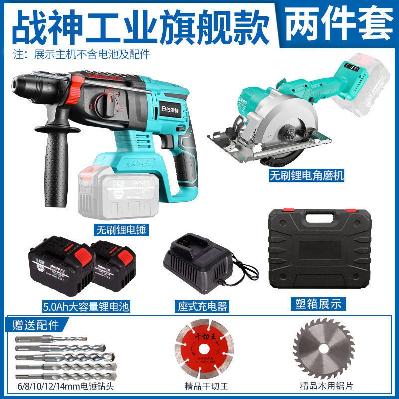 Brushless rechargeable electric hammer drill electric pick high-power corner mill cutting machine home impact drill mobile phone battery hand tool package
