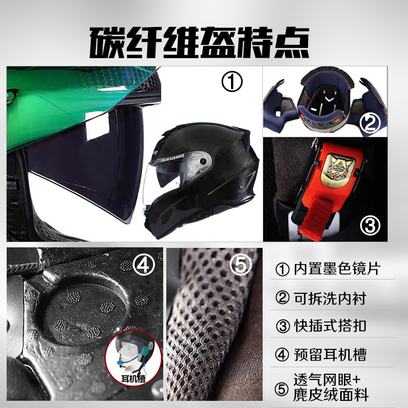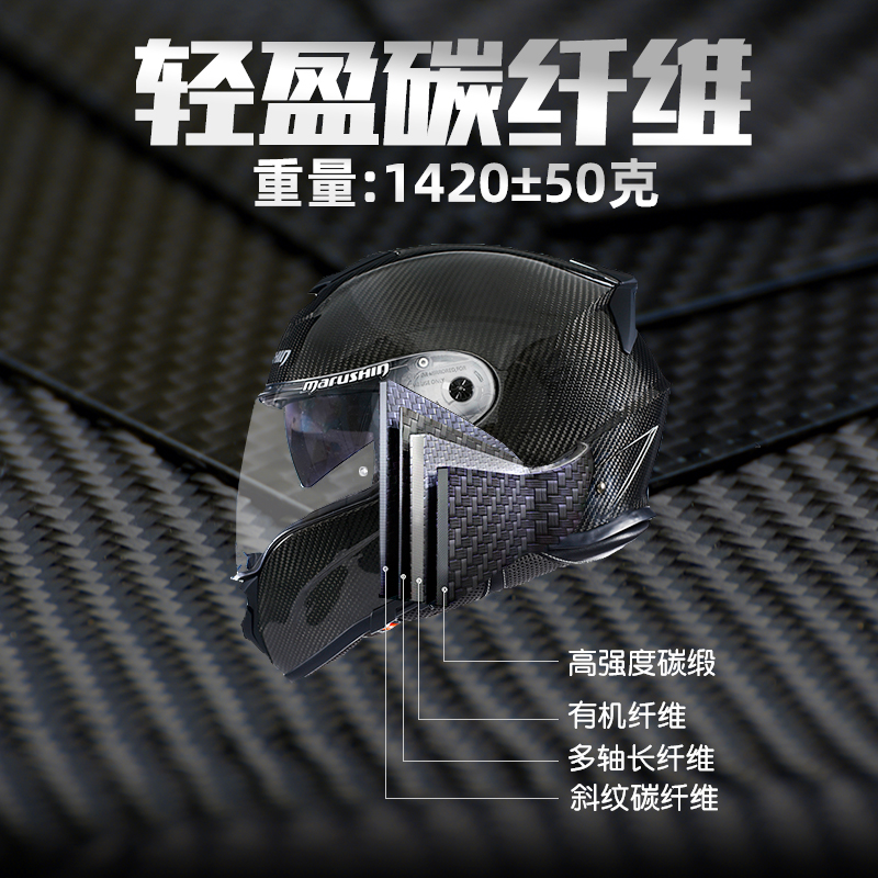 marushin Marushin Carbon Fiber Locomotive Bluetooth Full Helmet Anti-fog Summer Super Light Male Safety Hat B7