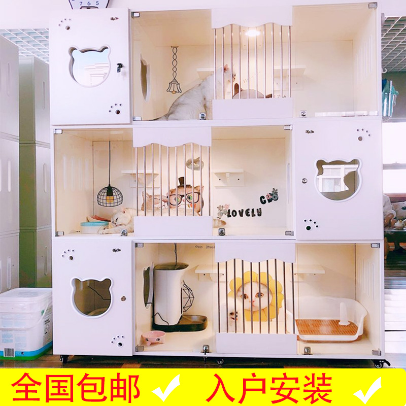 Solid wood cat villa cat cage Three-layer cat cabinet Cat house Cat display cabinet Pet shop Breeding foster delivery room customization