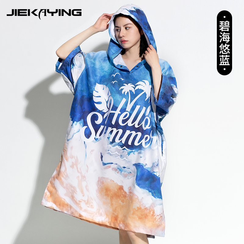 Bathrobe swimming bath towel quick-drying cloak hooded can be worn for men and women hot spring dressing style quick-drying sunscreen beach towel