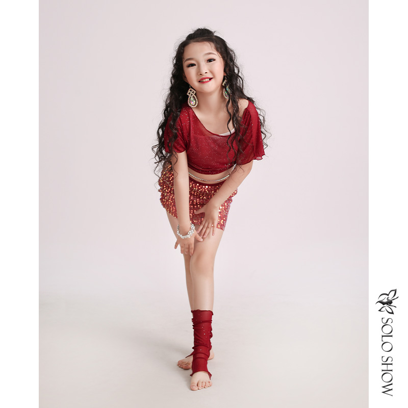 Magnificent Solo Show 2022 Summer New Belly Leather Dance Children Practice Clothes Hot Silver Water Yarn Bright Sheet Short Skirt Walking Show Suit