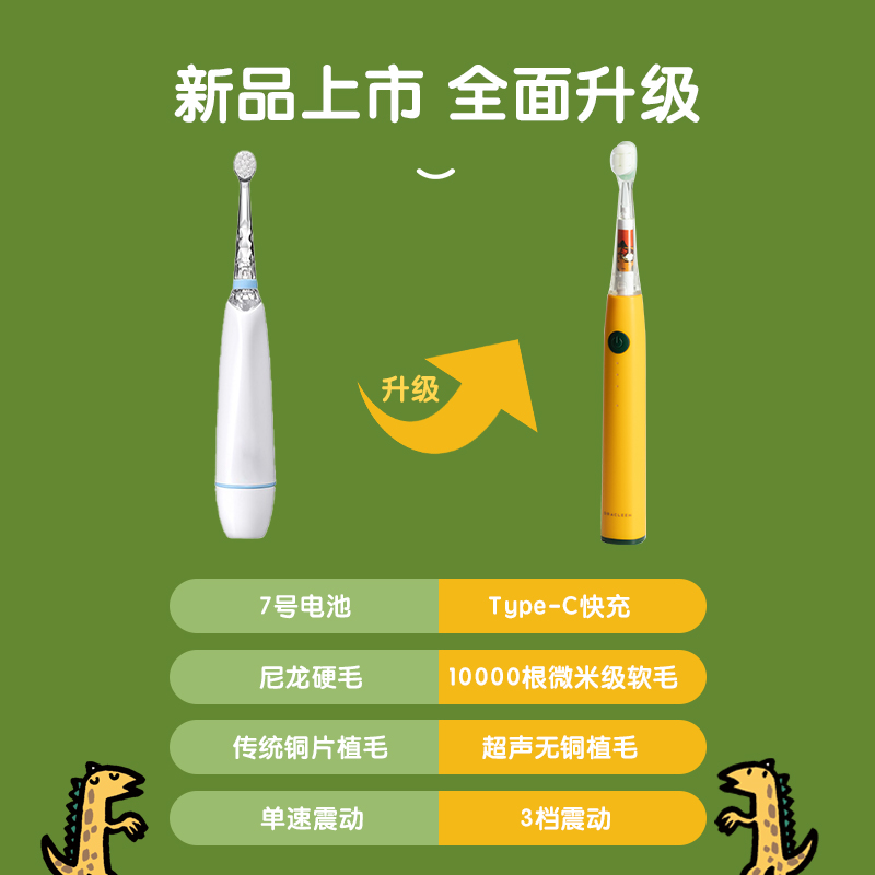 Aiyagong Xidaya Dinosaur children's electric toothbrush with lamp Wanmao soft hair ultrasonic rechargeable automatic