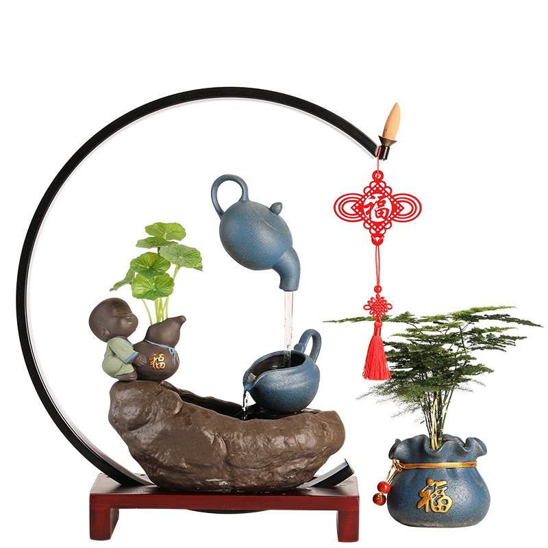 Creative Sky Pot Suspension of the Kettle Cycle Flowing Water Strokes of the Fountain Pendulum to open Joe relocation Gift Genguan Bar Table Face Pendulum