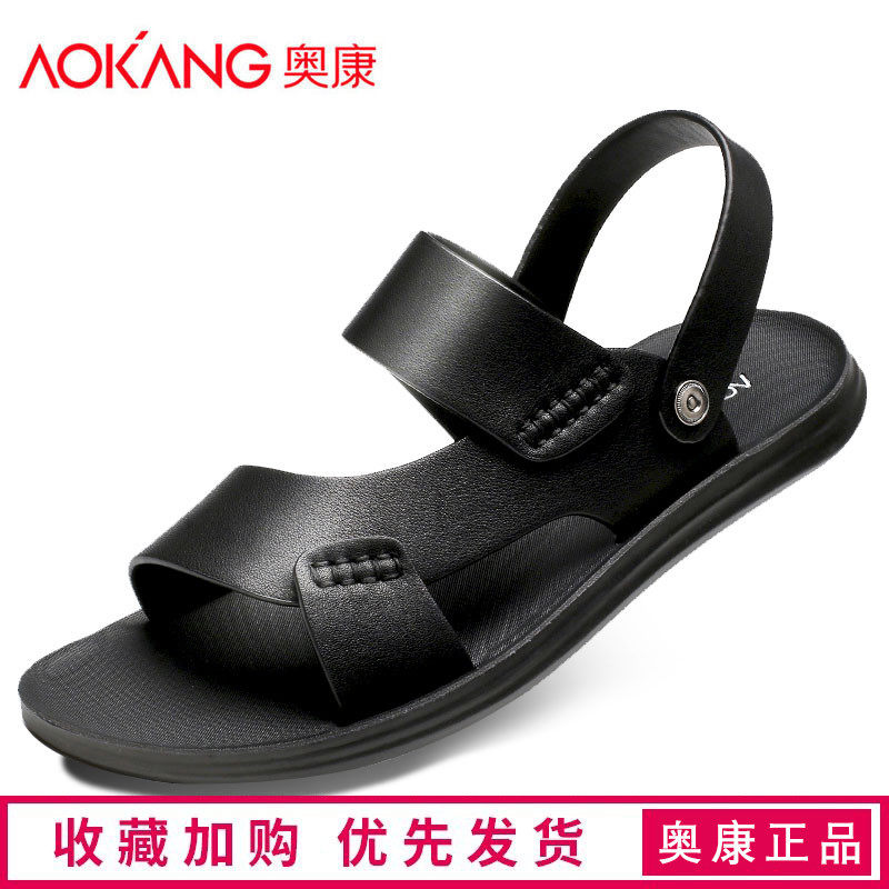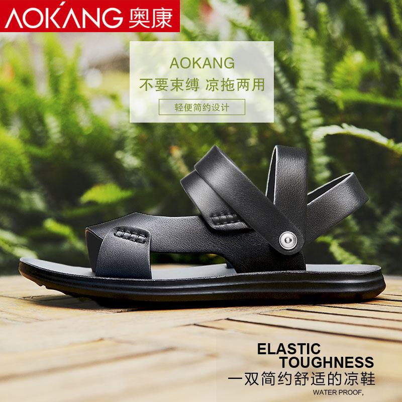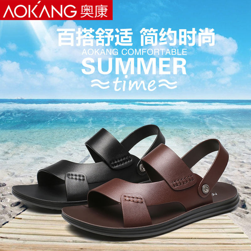Aokang men's sandals 2022 summer new trend dual-use youth soft bottom non-slip leather casual beach men's sandals and slippers