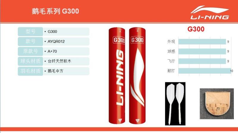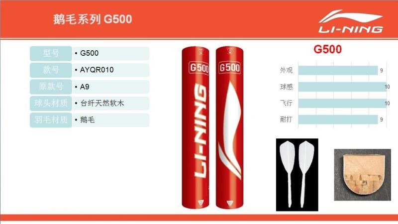 G100 ball (original KS15) 77 speed goose feather D3 ball (original AC28) 77 speed duck hair D6 ball (formerly A3) 77 speed duck hair G200 ball (original A